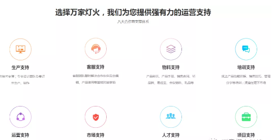 三:總部建立了一整套*的代理幫扶流程,包括生產(chǎn)支持,客服支持,物料支持,培訓(xùn)支持,運(yùn)營支持,市場支持,人才支持,項(xiàng)目支持八大支持政策。