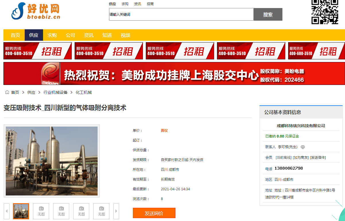 投放824條商盟,成都氯乙烯專用吸附劑、2000方甲裂制氫裝置、1.5萬方甲裂制氫、800方焦?fàn)t煤氣提氫、1.5萬方氫氣提純裝置、900方甲裂制氫、成都氧化鋁專用硅膠等關(guān)鍵詞都在吉斯特建材網(wǎng)、好優(yōu)網(wǎng)、商機(jī)購、365資源網(wǎng)等平臺(tái)展現(xiàn),大大提高了搜索引擎抓取收錄機(jī)會(huì)。