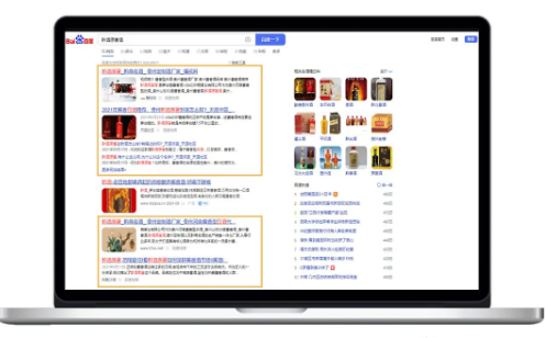 給大家舉個例子,搜索“黔酒原著酒”,你會發(fā)現百度首頁都是糧草倉有限公司的廣告位。